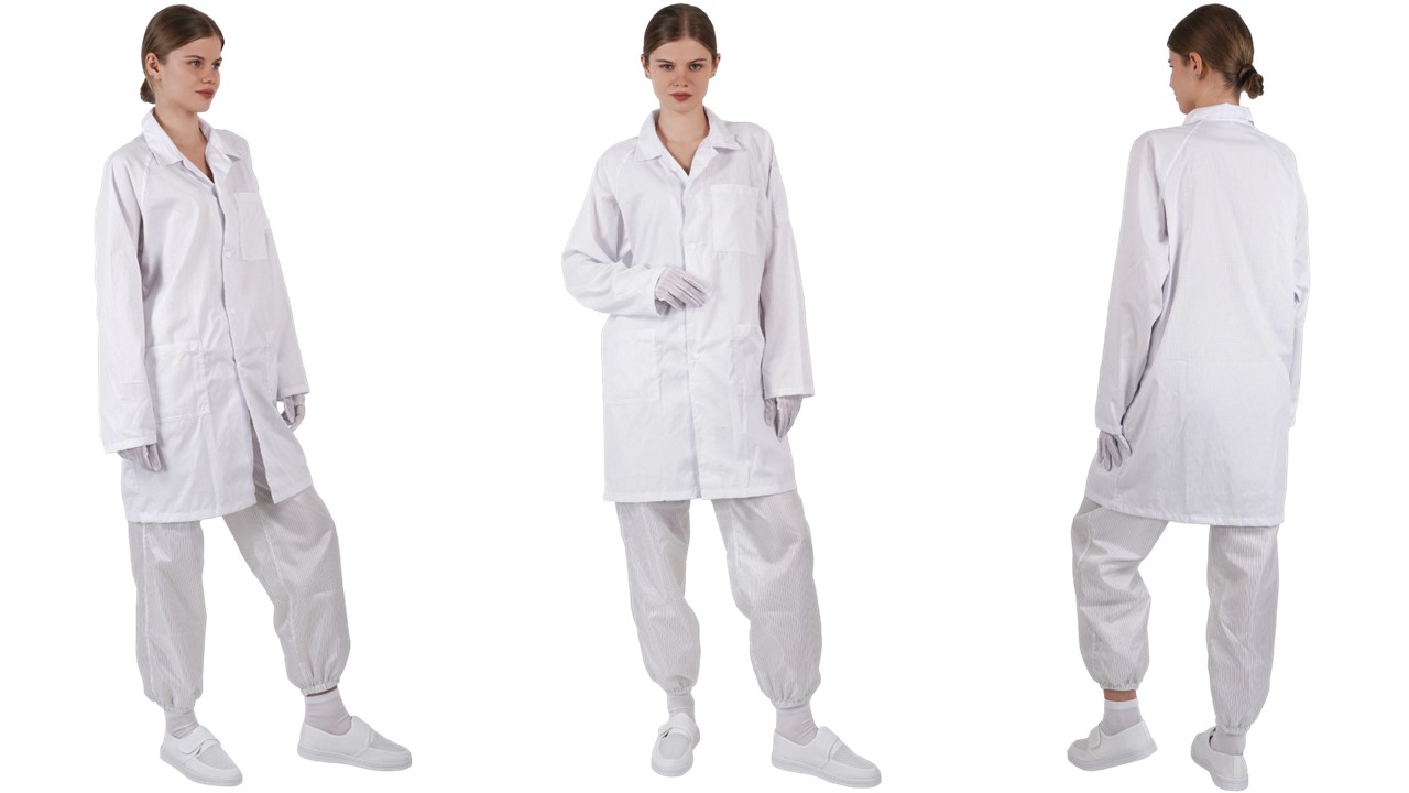 ESD対応TC綿素材の帯電防止スーツカラータイプロングコートクリーンルームウェア