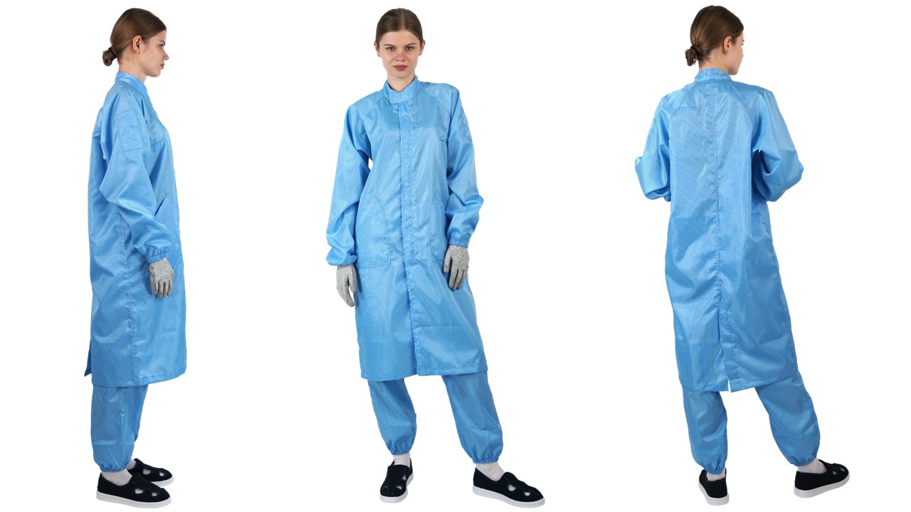 帯電防止スタンドカラータイプのクリーンルームコート