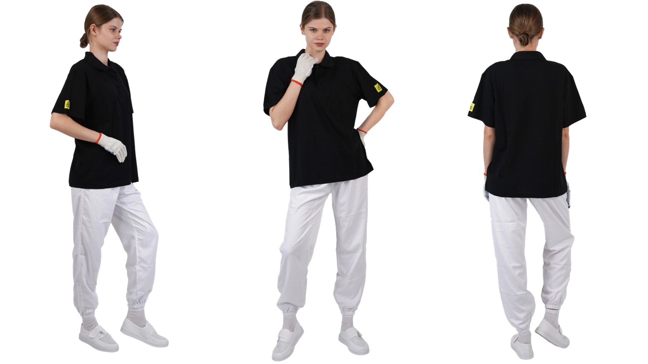 クリーン作業場用ESD Tシャツ、帯電防止半袖